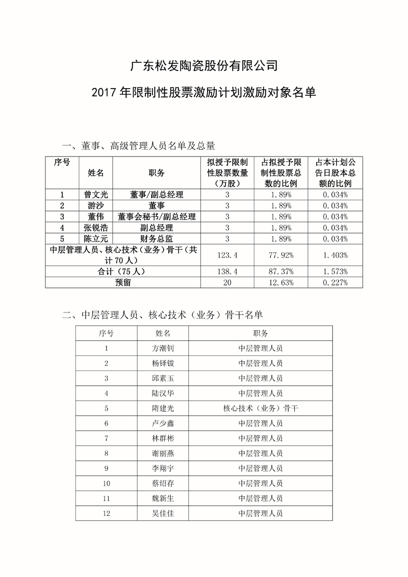 监事会关于公司 2017年限制性股票激励计划 激励对象名单审核及公示情况的说明